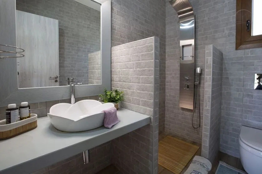 Through the wooden stairway with the wide windows for natural light, you visit the 1st floor. The floor has 2 double bedrooms and 2 bathrooms with shower. Traditional items and vintage tools are incorporated in the décor and the embroideries are displayed in a discrete and warm way.